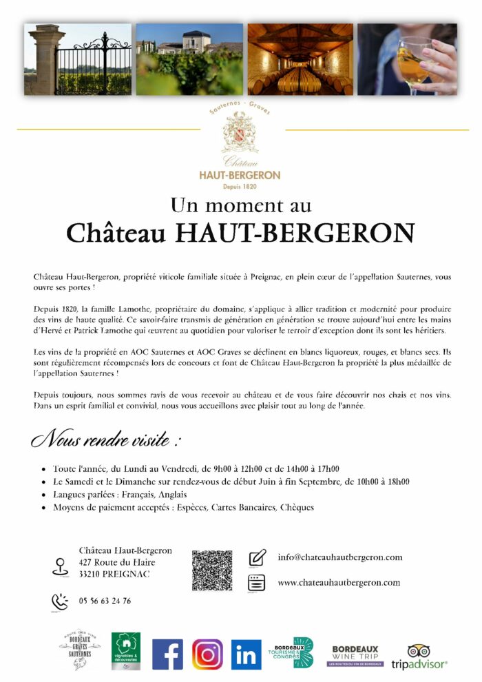 Depuis 1964, le Château Haut-Bergeron comptabilise pas moins de 118 médailles, dont 68 médailles d’Or, ce qui fait de lui, le domaine le plus médaillé de Sauternes.